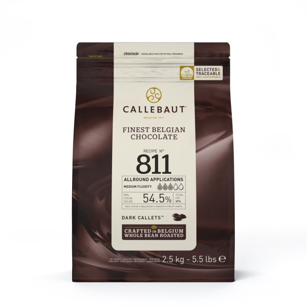 Recipe n° 811 has a round, extremely well-balanced chocolate taste, smooth cocoa body with a pleasant intensity. It is easy to pair with a wide variety of different flavours and ingredients. Loved by chefs all over the world, the 811 is Callebaut's all-round chocolate for confectionery, ganaches, mousses, biscuits, sauces, drinks and many other applications.